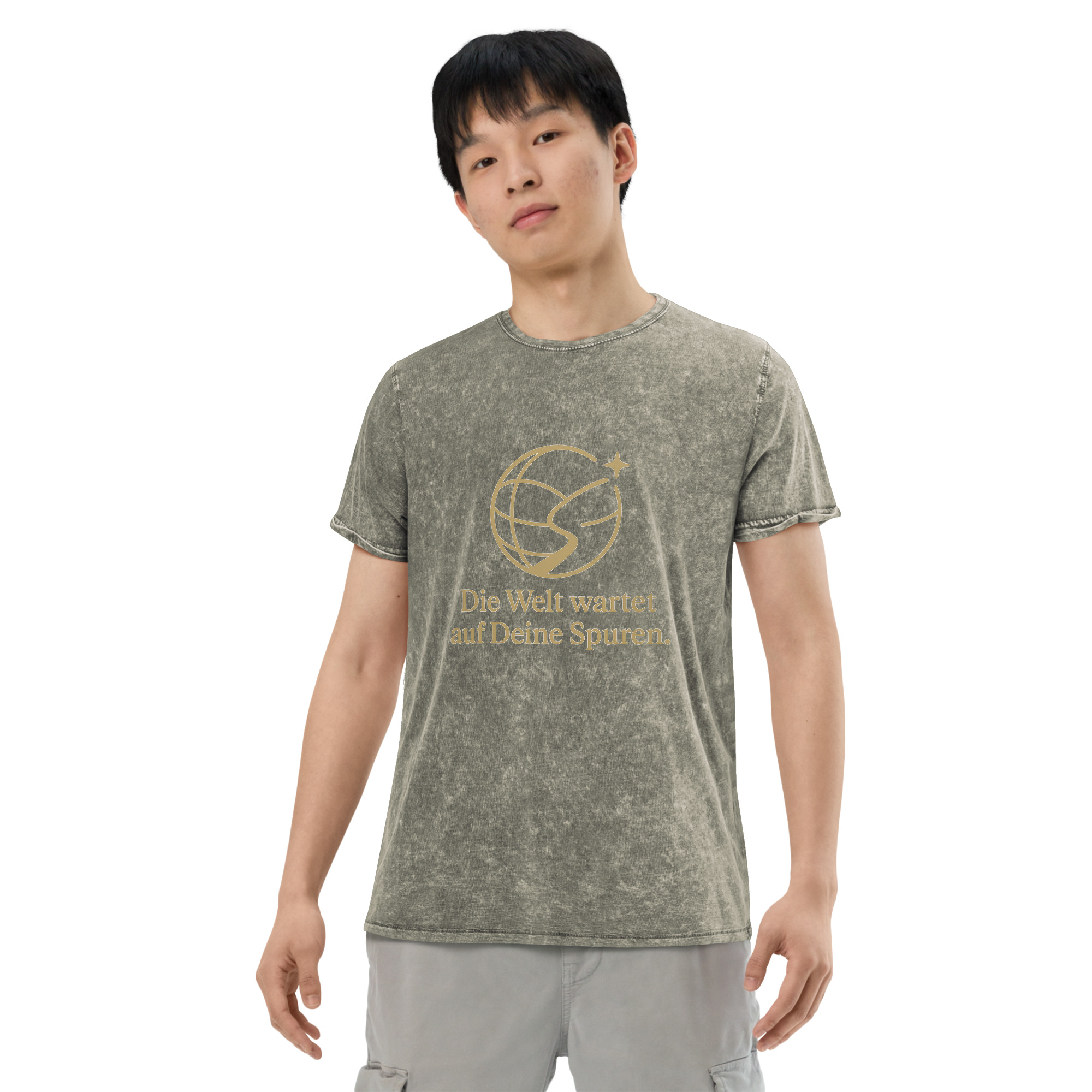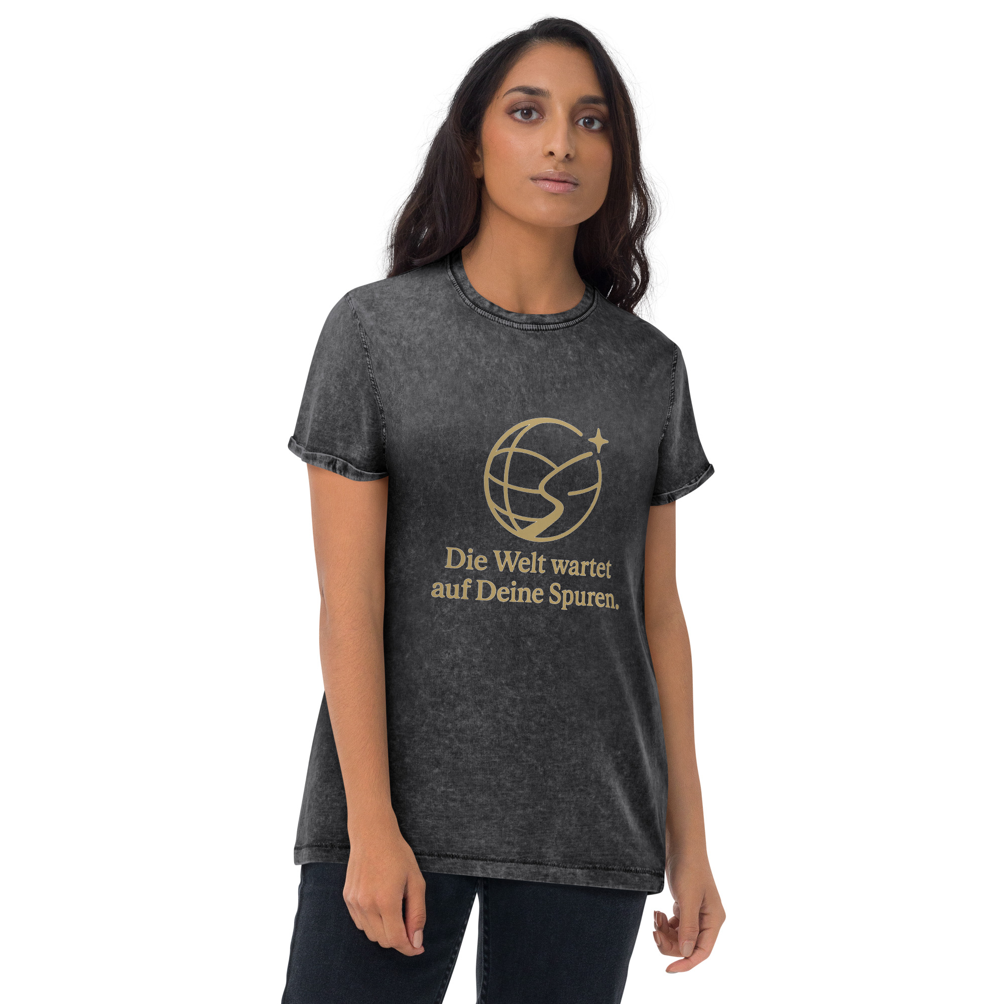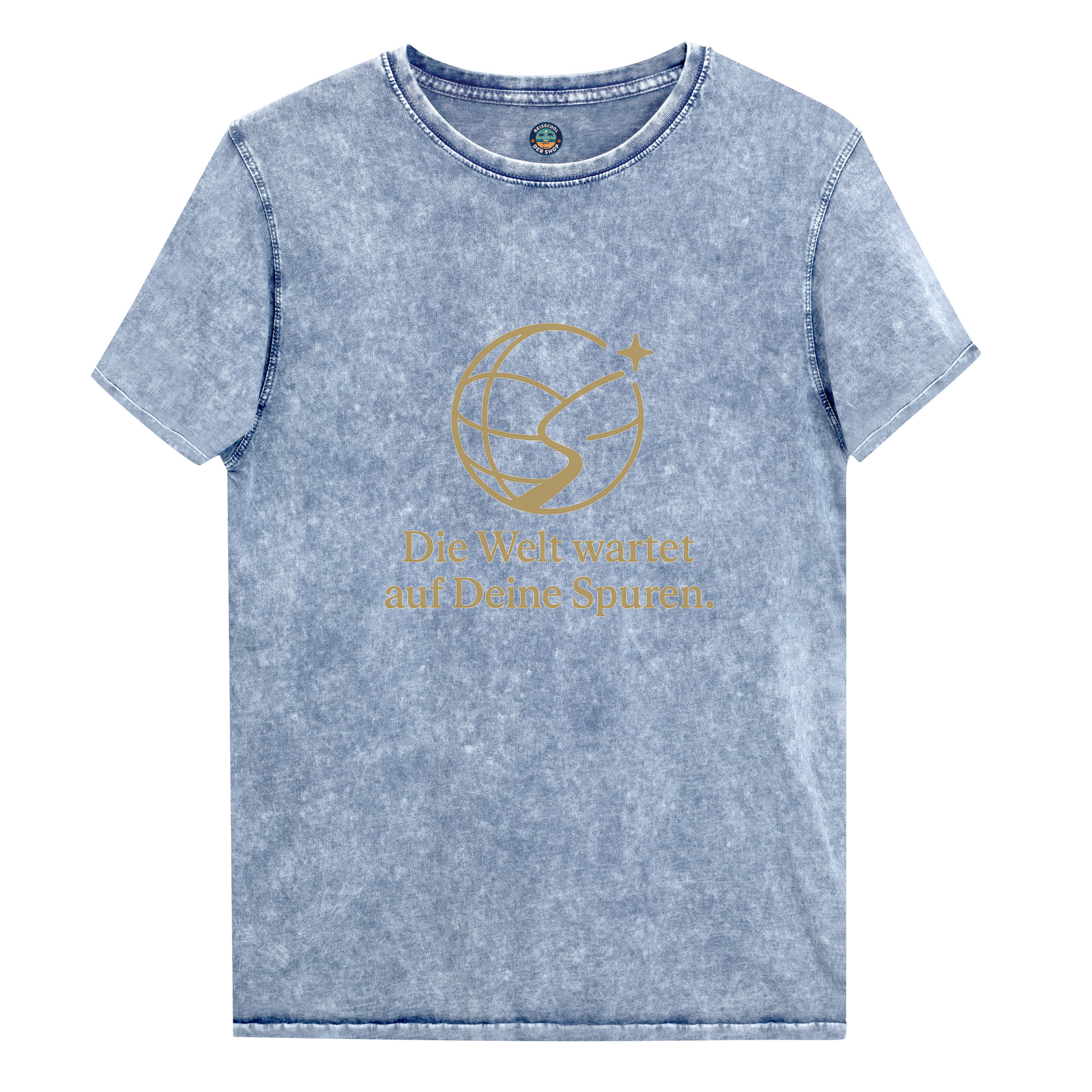 Dieses Denim-T-Shirt besteht aus 100 % gekämmter Baumwolle und hat einen klassischen Rundhalsausschnitt mit gerippten Ärmelbündchen. Es ist weich, bequem und ein Muss für jeden Modebegeisterten!