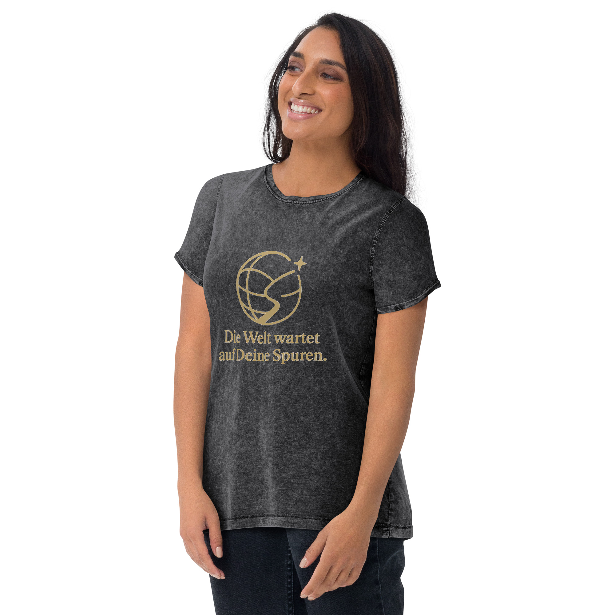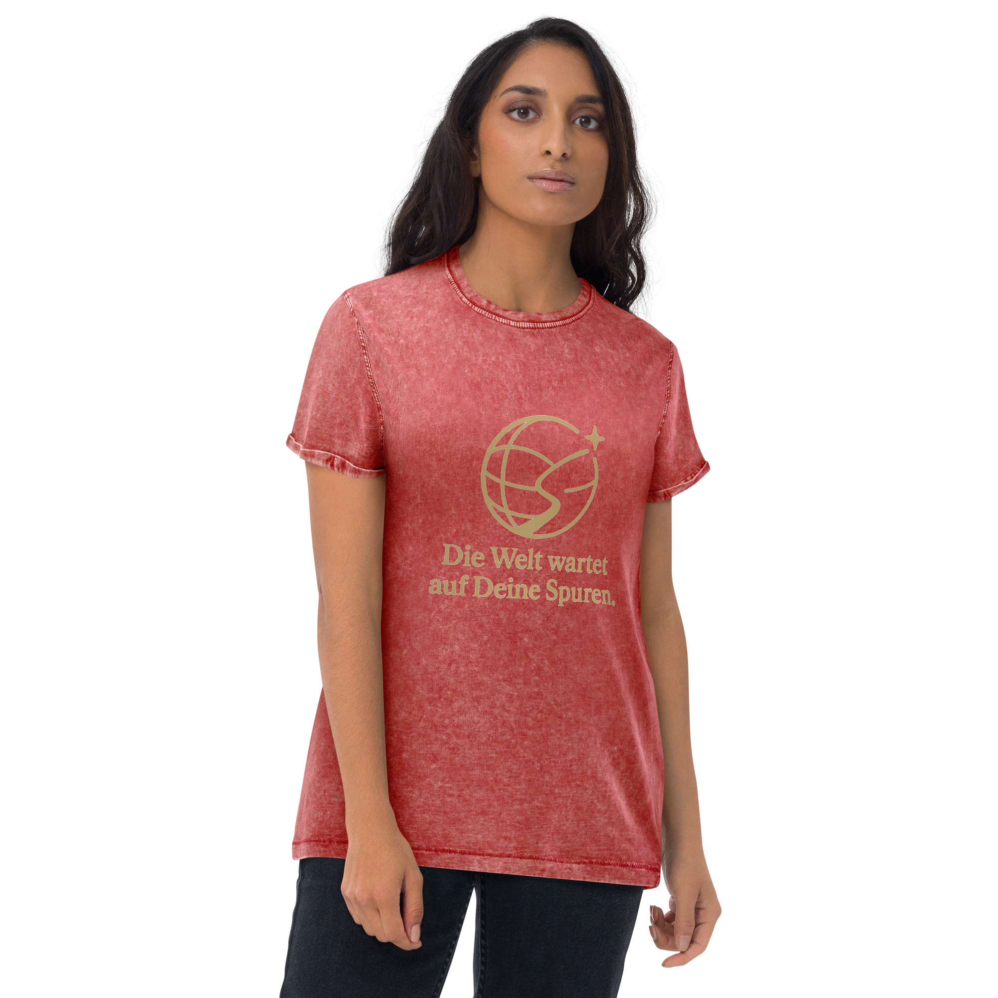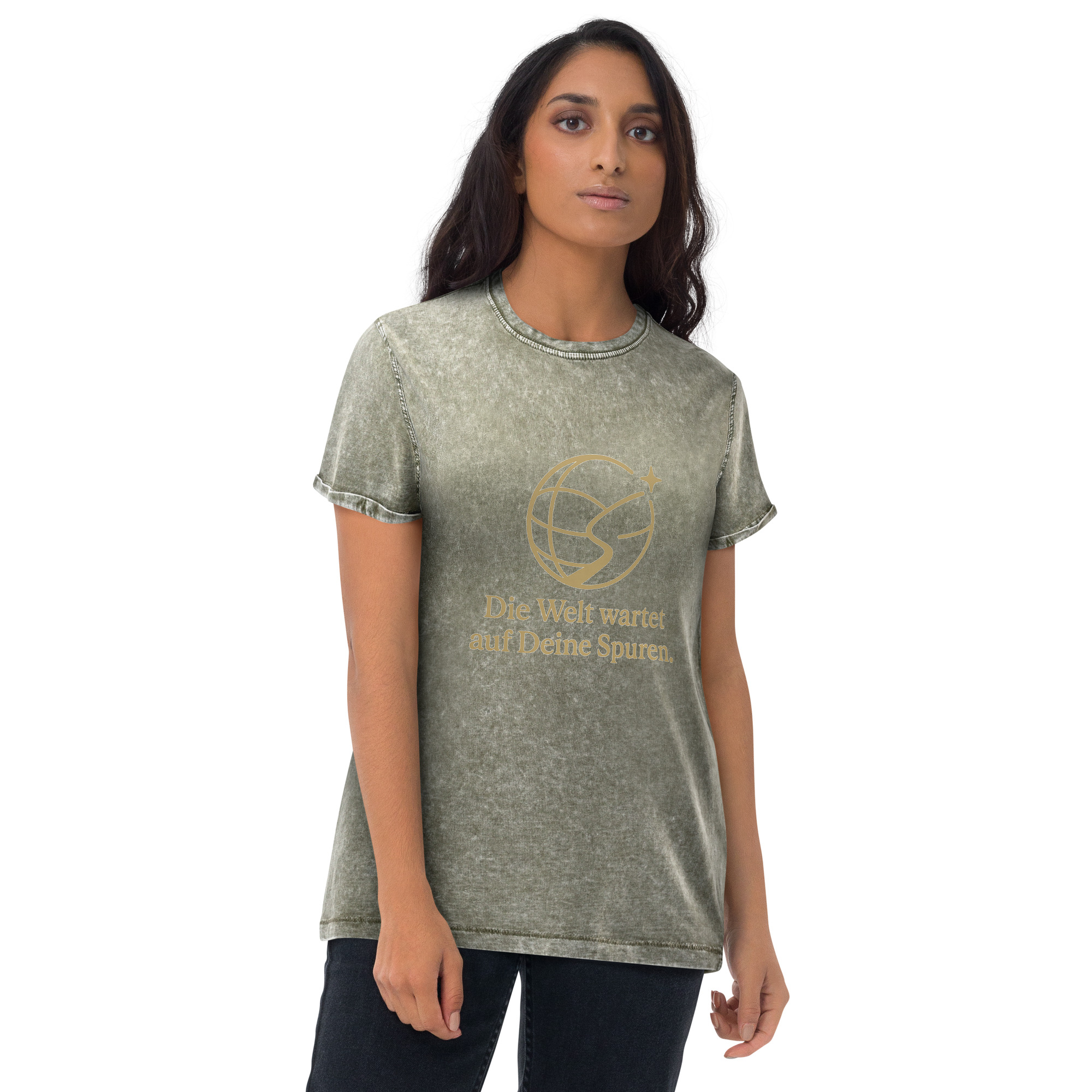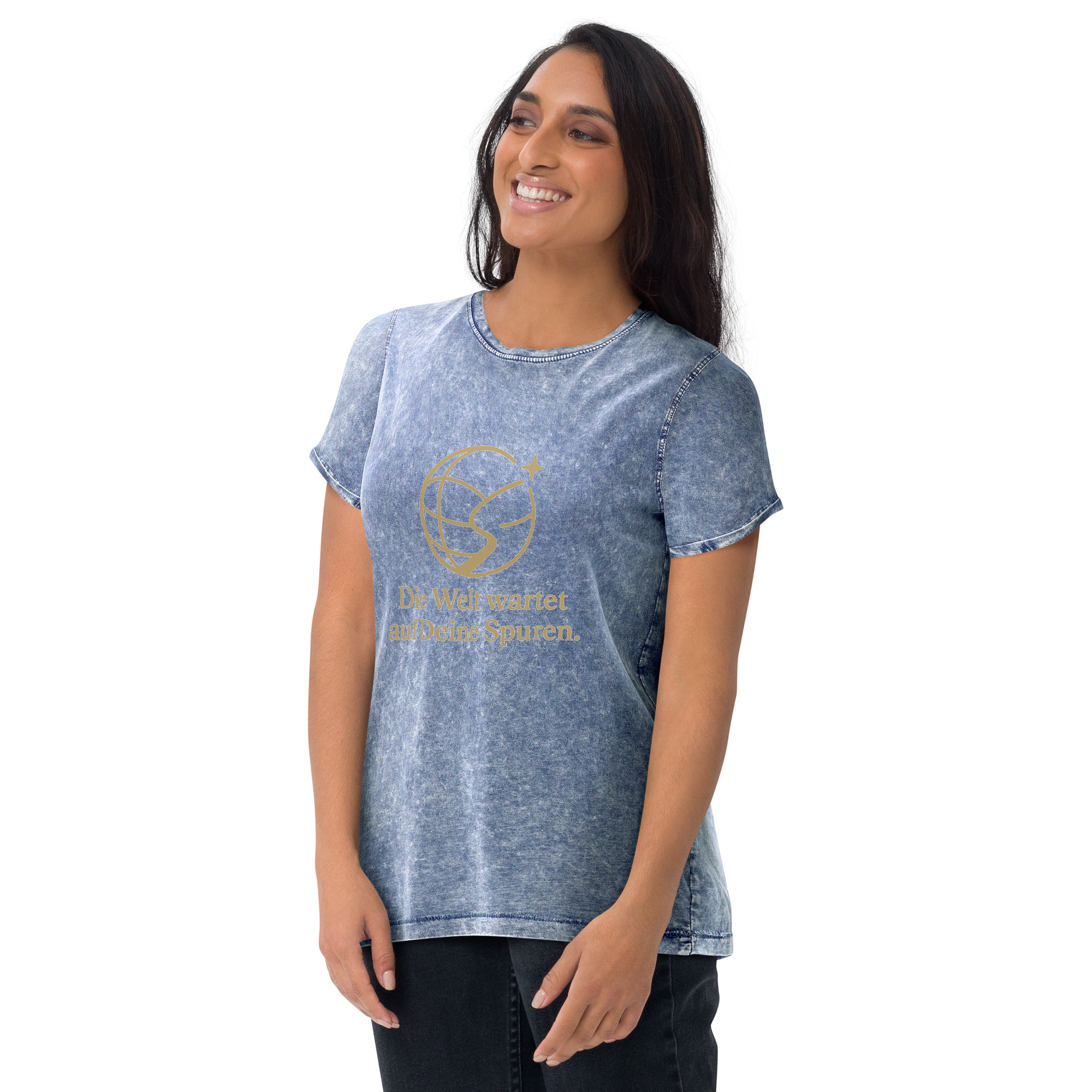 Dieses Denim-T-Shirt besteht aus 100 % gekämmter Baumwolle und hat einen klassischen Rundhalsausschnitt mit gerippten Ärmelbündchen. Es ist weich, bequem und ein Muss für jeden Modebegeisterten!